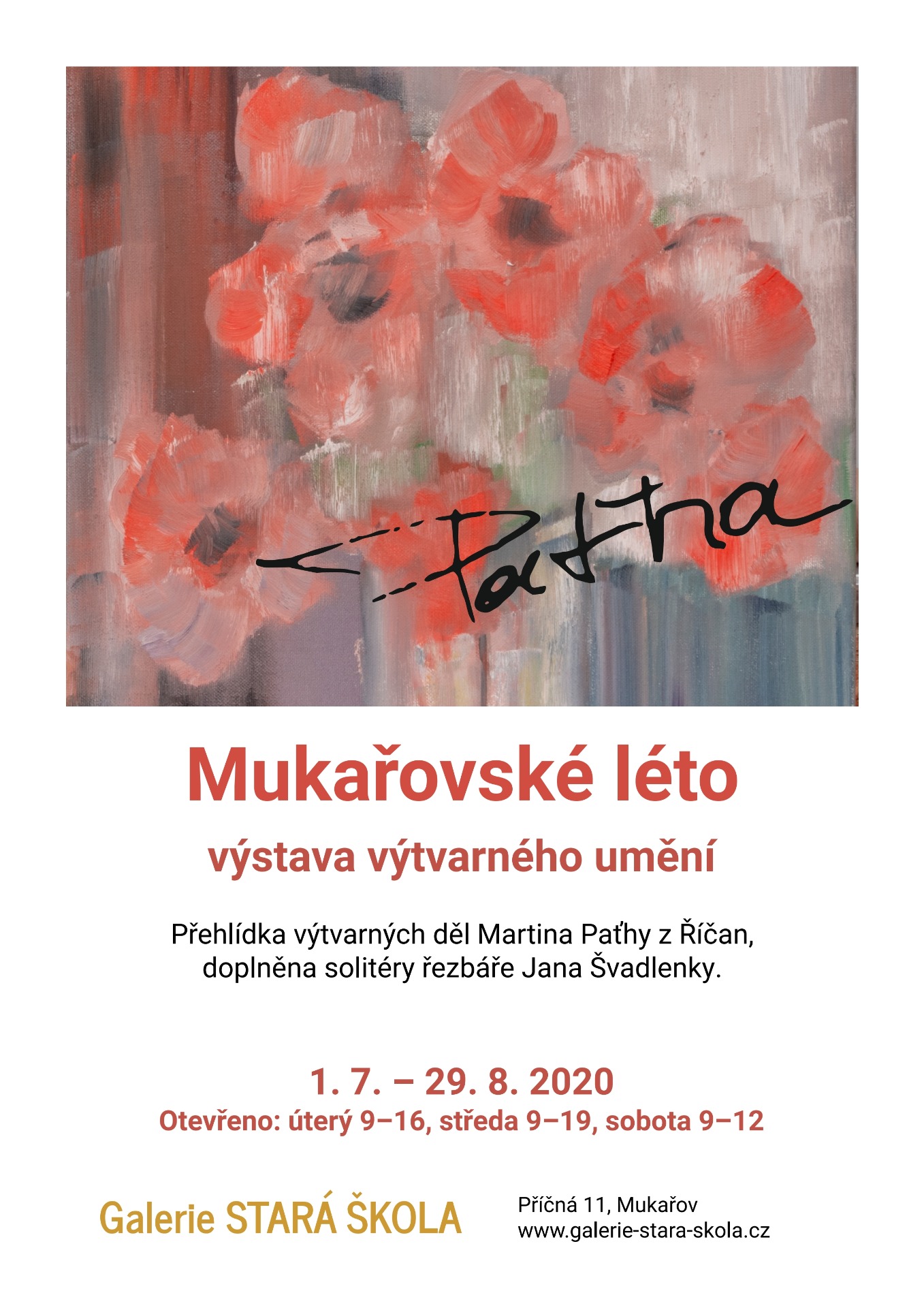 Martin Paťha je profesí reklamní grafik. Vztah a vlohy k výtvarnému umění projevoval už od dětství, mezi zálibami ale nadlouho převládal sport. Malování se intenzivně věnuje posledních deset let. Zkouší různé techniky i styly, společným jmenovatelem jeho děl je fascinace přírodou i zajímavými místy všude po světě. Galerie Stará škola má tu čest hostit jeho první soubornou výstavu, kterou doplňují dřevěné plastiky umělce, který je v Mukařově doma, Jana Švadlenky.